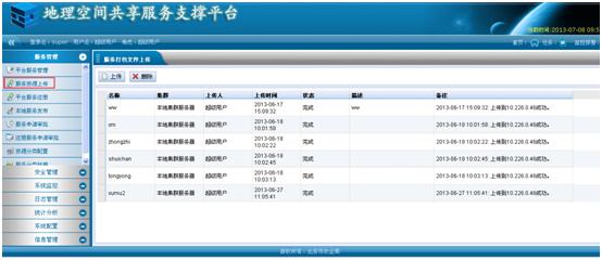 平台管理系统是集资源管理、服务管理、安全管理、运维管理、系统配置为一体的管理平台,为空间信息共享支撑服务平台7x24小时的安全、稳定、高效运行提供保障。
