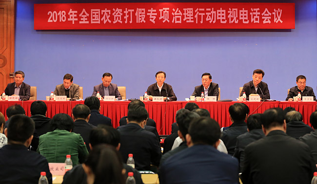 会议强调,2018年是贯彻党的十九大精神、实施乡村振兴战略的开局之年,农资打假工作要有新气象新作为。各地各部门要秉持发现问题是业绩、解决问题是政绩的工作理念,坚持标本兼治、打防结合,零容忍、出重拳,强队伍、严监管,严厉打击各类违法违规行为,不断健全农资打假长效机制。要瞄准重点品种开展专项整治。围绕假劣种子、肥料有效成分不足、农兽药隐性添加等突出问题,集中开展春季农资打假专项行动,再查处通报一批情节严重、影响恶劣的制售假劣农资违法犯罪典型案件。要围绕重点区域强化质量监督抽查。紧盯城乡结合部、农资经营集散地等重点区域,按照“双随机”要求继续强化农资质量监督抽查。要推动关口前移严格投入品审批准入。提高农资产品准入门槛,严格限制高残留、高污染、高耗能农资产品重复登记注册,再淘汰一批落后产能。要实施农资领域诚信建设计划。推动农资领域信用体系建设,建立农资生产经营主体信用档案,制定出台农资违法失信黑名单管理办法,把信用作为各类农业项目申报、资格审查、行政许可审批的必要条件。要继续开展放心农资下乡进村活动。在全国举办田间课堂、现场咨询和展览展示,指导农民科学购买、合理使用农资产品,畅通放心农资下乡进村渠道。
