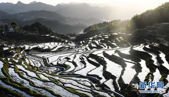晨曦中的雾云山梯田(4月10日摄)。新华社记者 程敏 摄