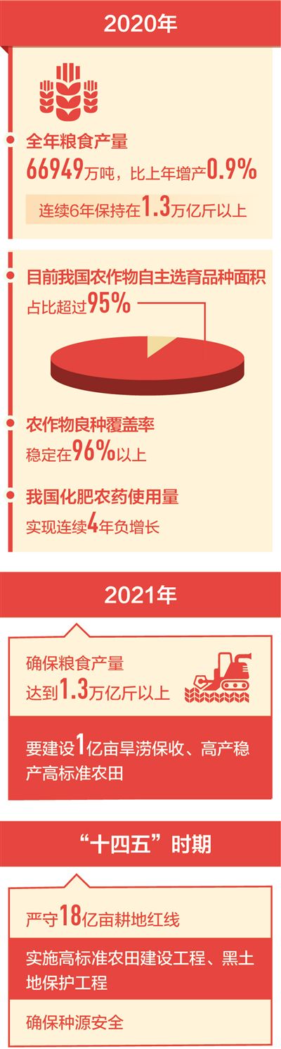 “十四五”规划和2035年远景目标纲要草案提出,夯实粮食生产能力基础,保障粮、棉、油、糖、肉、奶等重要农产品供给安全。