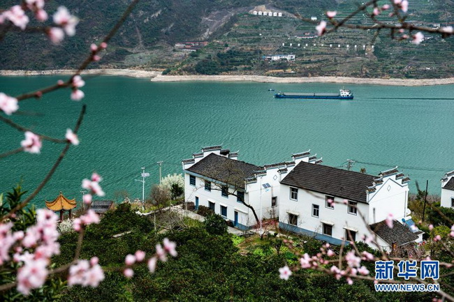 这是2月27日在三峡库区秭归县屈原镇西陵峡村拍摄的鲜花盛开的脐橙园。湖北省宜昌市秭归县在建设美丽乡村中,因地制宜,在脐橙园里种植桃树、李树等果树。此举既保护了三峡库区的水土,增加了当地村民收入,也使峡江两岸乡村美丽如画。 新华社发(郑家裕 摄)