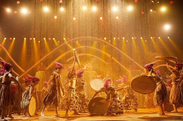 千鼓万鼓敲响,丰收的谷物随号子声倾泻而下,杨丽萍舞团的《丰收赞歌》将观众带入了原始部落时期恢弘的空间。鼓点和舞步彰显喷薄的生命力,织就了一个丰收的狂喜的梦。