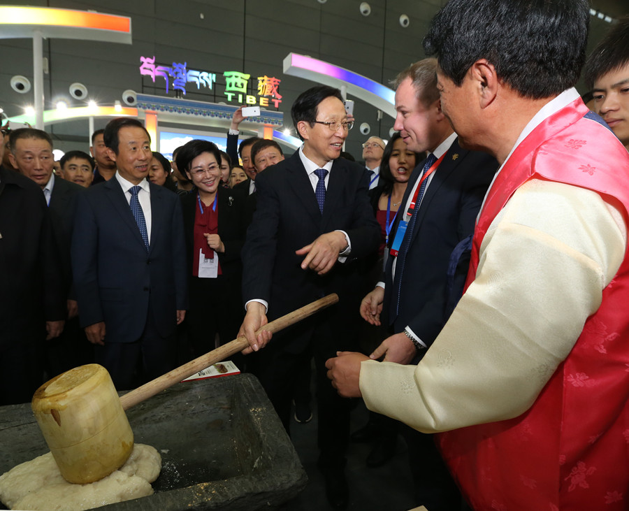 韩长赋在巡馆时指出,党中央、国务院着眼农业农村经济发展全局,把推进农业供给侧结构性改革作为农业农村工作的主线,全面部署实施了乡村振兴战略。农交会是中国最权威最具影响力的综合性农业展会,是中国农业发展巨大成就的集中展示、中国农业市场化的重要标志、中国农业对外开放的重要窗口。农博会是展示农业新技术、新产品、新成果,促进现代农业大交流、大合作、大发展的合作盛会。湖南可以依托这些重要平台,进一步加强农业领域对外交流合作,让更多优质农产品走出湖南、走向世界。希望湖南在推动“三农”工作中不断改革创新,为全国农业发展探索新经验、做出新贡献。