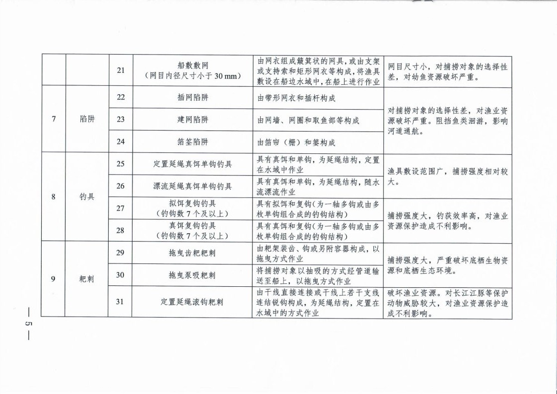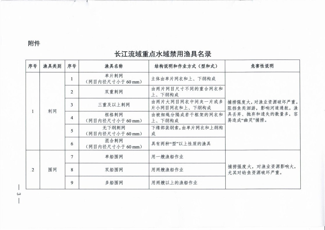 农业农村部关于发布长江流域重点水域禁用渔具名录的通告