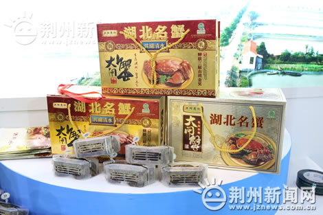 上午11点,在福州国际海峡会展中心5号展厅荆州展区内记者看到,洪湖的螃蟹、监利的鳝鱼、江陵的莲藕、沙市的鱼糕、鱼丸等名特优水产品已经摆满了展区。
