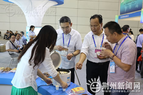 在荆州展区的现场烹饪品尝区,工作人员将煮好的罗湖鱼糕让市民免费进行品尝。来自福建厦门的郑先生在品尝鱼糕后认为,吃鱼而不见鱼,荆州鱼糕味道鲜美,在福建市场将会受到市民的青睐。