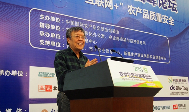 11月8日,2015农业信息化高峰论坛之“互联网+”农产品质量安全分论坛上,国家信息中心原首席工程师宁家骏介绍“互联网+”农产品质量安全的建设思路。