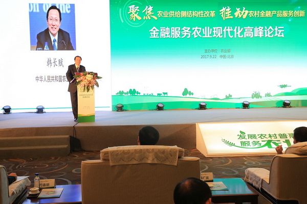 韩长赋部长在金融服务农业现代化高峰论坛上的主旨演讲