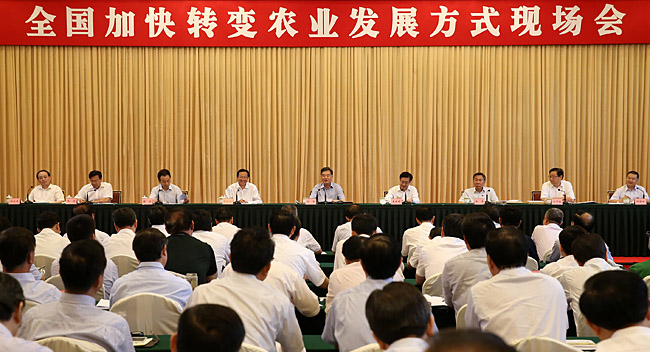 7月24日,全国加快转变农业发展方式现场会在四川省成都市举行,国务院副总理汪洋出席会议并讲话。他强调,加快转变农业发展方式、促进农业转型升级,是党中央、国务院着眼经济社会发展全局作出的重大部署。要以改革创新为动力,以发展多种形式适度规模经营为核心,以构建现代农业经营体系、生产体系和产业体系为重点,推动转变农业发展方式尽快取得实效,确保国家粮食安全和农民持续增收,努力走出一条中国特色农业现代化道路。