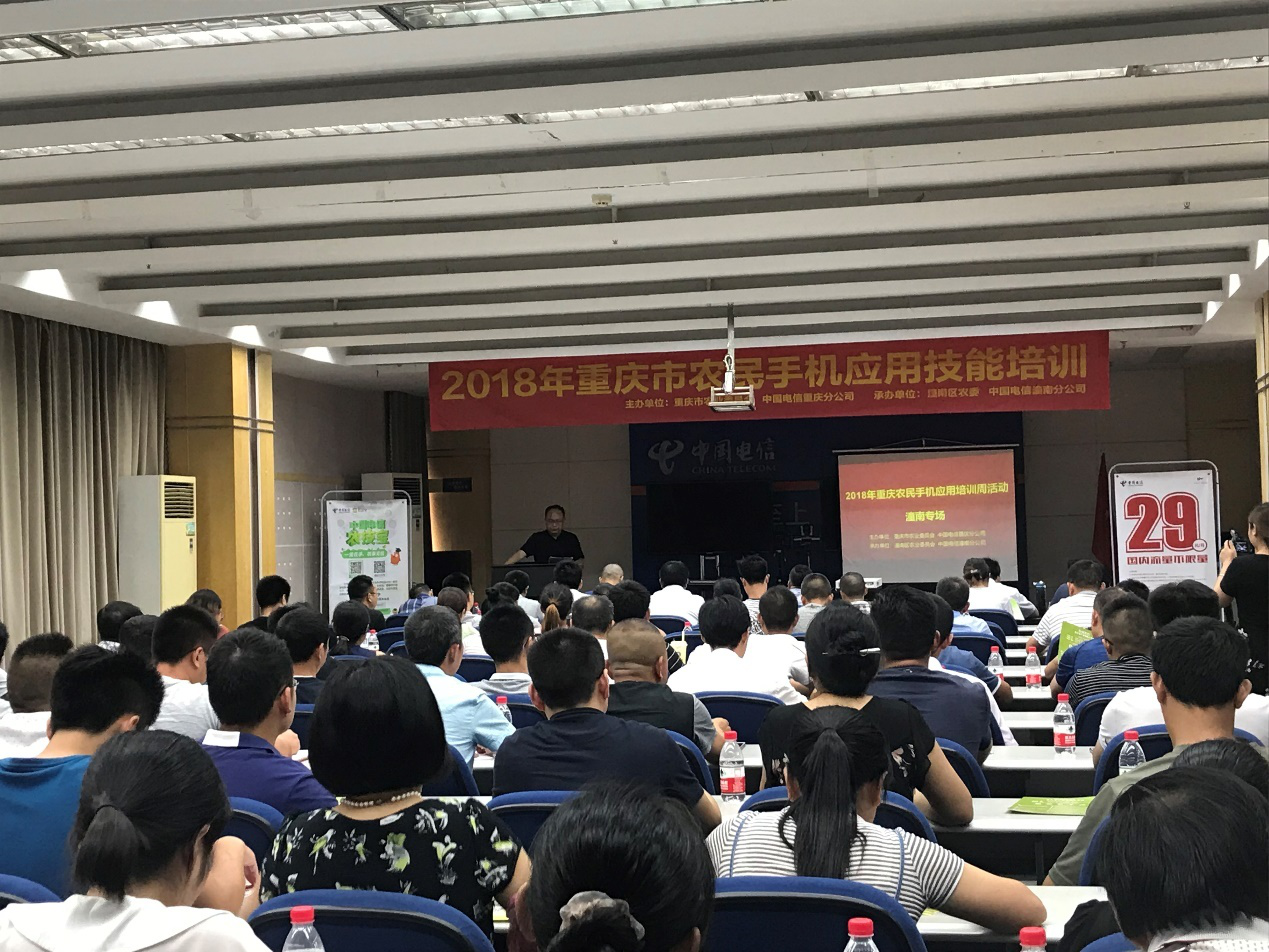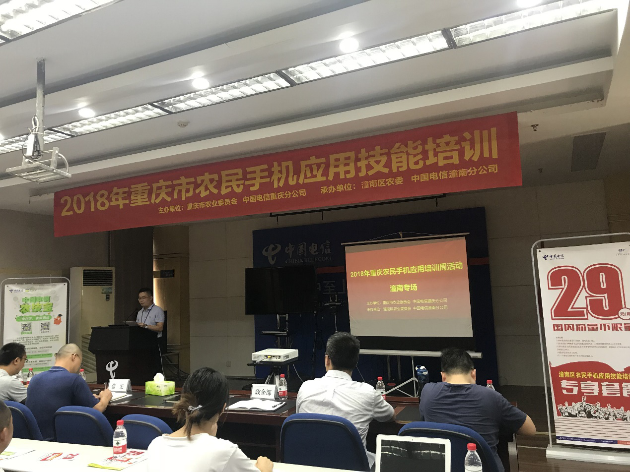 2018年7月24日至28日,为积极响应农业农村部全国农民手机应用技能培训活动,中国电信四川分公司、,真正让手机成为农民发展生产、便利生活、增收致富的好帮手.中国电信重庆分公司联合重庆市农委于2018年7月24日至28日在璧山、江津、潼南、永川、万州五个区县共同举办了2018年农民手机应用技能培训周活动。