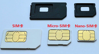 SIM卡,就是俗称的手机电话卡,想要实现手机通话和4G网络的访问就离不开这一张小小的卡片。SIM卡通常有三种不同规格和尺寸,分别为SIM、Micro-SIM以及Nano-SIM如上图所示,三者统称为SIM卡。这三种卡的芯片部分是一样的,区别只在于芯片外围塑料部分面积的不同。随着移动通信的发展,SIM卡的体积越来越小,以满足手机轻薄化的发展潮流。