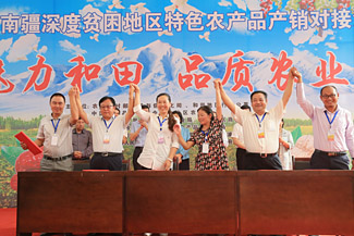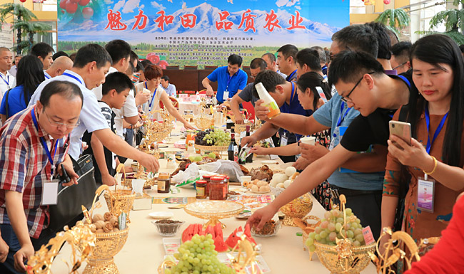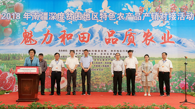 828日,2018年南疆深度贫困地区特色农产品产销对接活动在新疆维吾尔自治区和田地区举办。14家企业代表现场签订了1.4亿元购销协议,来自全国10个省份58家大型采购商全年意向经销全疆农产品可达18.22亿元,交易数量达21.78万吨。中国农产品市场协会会长张玉香出席并讲话。