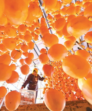 深秋时节采柿忙