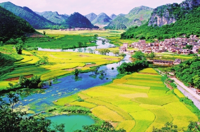 文山壮族苗族自治州广南县八宝贡米基地稻香鱼肥