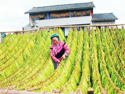 红河哈尼族彝族自治州蒙自市烟农在晾晒烟叶