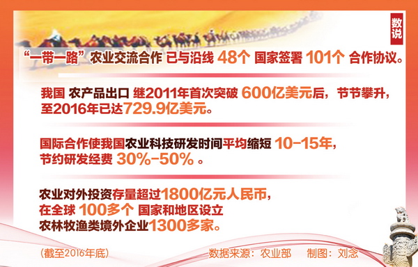 这是清晰的路线图。从“一带一路”伟大构想的提出、落地到深化;从2014年起中央一号文件年年拿出章节重点部署,到“十三五”规划纲要把“开放”纳入发展新理念……都为我国农业对外合作指明了前进的航向。