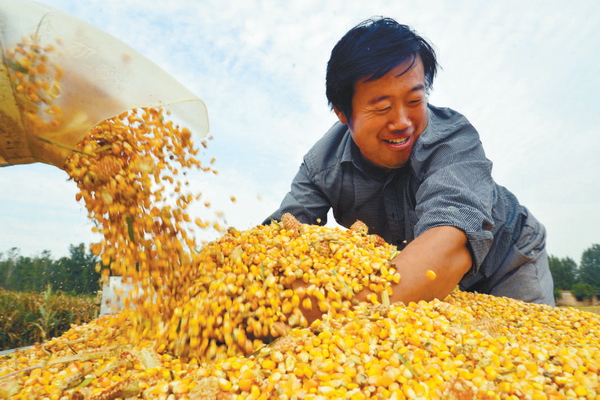10月4日,在山东省聊城市茌平县贾寨镇,种粮大户贾国才在收获玉米。 赵玉国摄(新华社发)