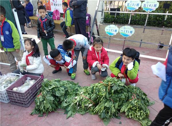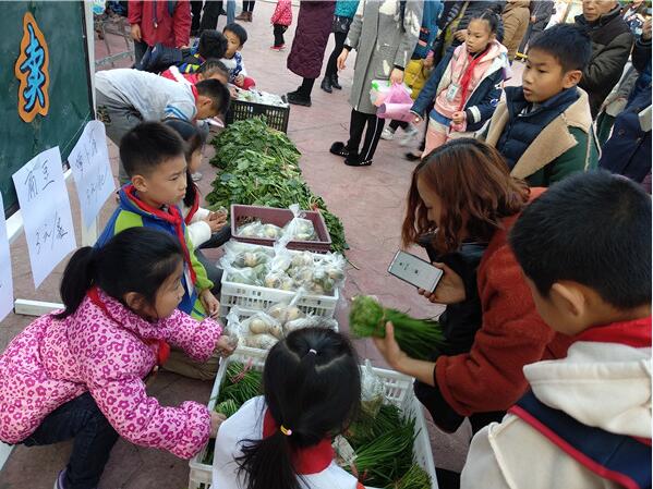 11月26日下午还没放学,学校大门口一侧就被家长围得水泄不通,原来是“幸福农场”秋季蔬菜爱心义卖马上就要开始了。在二(4)班刘晓兰老师的带领下,几位“销售员”一字排开站在菜筐边,开始了促销活动。不到一会功夫,两筐韭菜就被抢购一空。不到半小时所有蔬菜全部售完。