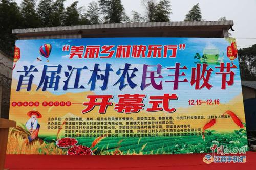 中国江西网景德镇讯 通讯员林宏报道:12月15日至16日,景德镇浮北山区江村乡李家村彩球飘荡,歌声飞扬,人头攒动,来自全市的2000多名游客兴致勃勃地参加“美丽乡村快乐行”首届江村农民丰收节活动。