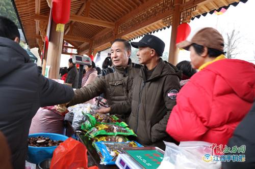在一条古色古香的长廊上,江村乡各村农民拿出一年最好的特产鲜货,有机大米、有机茶油、香菇木耳、冬笋干菜、红薯年糕......游客们围在摊位前谈价选货,收获的不仅是原生态的土特产,而且是城乡居民交流互动的那份浓浓的情谊。吃杀猪饭是此次活动的重头戏,宽阔的乡场上,上百桌宴席铺排开来,煞是热闹壮观,尽管当天细雨朦胧,但丝毫没有影响游客们那份热情,新鲜的猪肉,原汁原味的萝卜白菜,让人们真正体验了一把乡村土味盛宴的快乐。