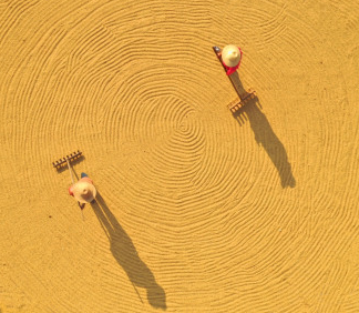 11月3日,农民在湖南省衡阳市衡南县谭子山镇炮公村晒稻谷(无人机拍摄)。