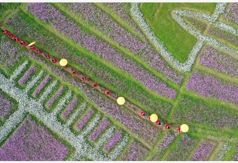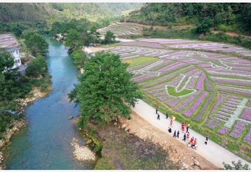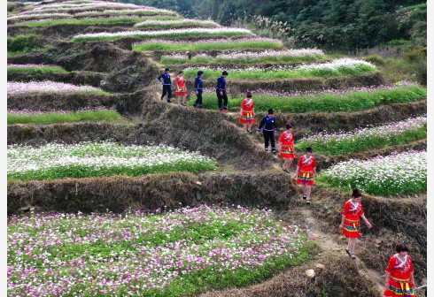 近日,广西百色市德保县城关镇那温村连片花海陆续盛开,吸引了众多游客。