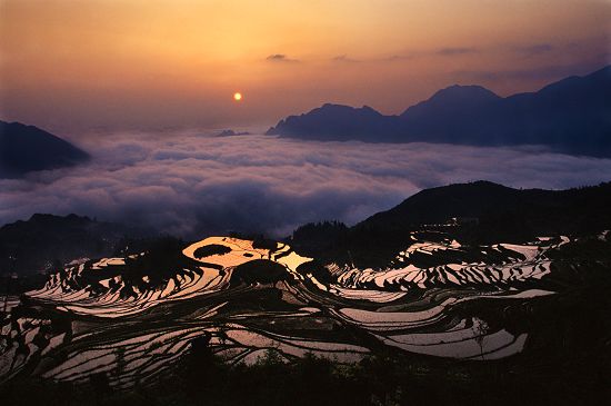 云和梯田农业系统位于浙江省云和县崇头镇,最早开发于唐初,兴于元明,距今已有1000多年历史。该梯田系统横跨高山、丘陵、谷地三个地质景观带,最多处有700多层,不仅具有江南独特的山区农耕文化,而且拥有浓郁的畲族风情,素有“千层梯田,千米落差,千年历史”的美称,被摄影界誉为“中国最美梯田”。