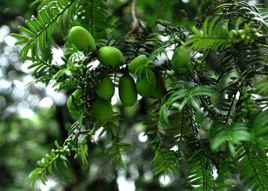 绍兴会稽山古香榧群位于绍兴市域中南部的会稽山脉,面积约400平方公里,有结实香榧大树10.5万株,其中树龄百年以上的古香榧有7.2万余株,千年以上的有数千株。2000多年前,绍兴先民从野生榧树中人工选择和嫁接培育成了香榧这一优良品种。因经过人工嫁接培育,现存古香榧树基部多有显著的“牛腿”状嫁接疤痕。位于绍兴县占岙村的千年榧树王,树龄长达1430余年,树高18米,犹如遮天巨伞。古香榧树历经千年仍硕果累累,堪称古代良种选育和嫁接技术的“活标本”。